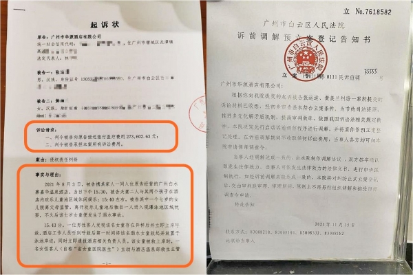 酒店主張,張姓父母作為監護人,卻讓孩子脫離監管20分鐘,應承擔70%責任,因此提起訴訟。張爸爸坦言「我聽到這個消息很震驚,家人還在悲痛中,沒有收到一句道歉,反而收到法院傳票…」因為女兒溺水時,酒店根本沒有救生員,也沒有氧氣設備,導致錯過黃金時間,後來在10月25日酒店就停止墊付醫藥費。