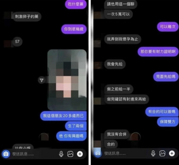 據阿姨透露,她已經57歲,有個和原PO朋友差不多年紀的小孩,這也是她第一次找人,「一次5萬可以,就弄到我懷孕為止」。