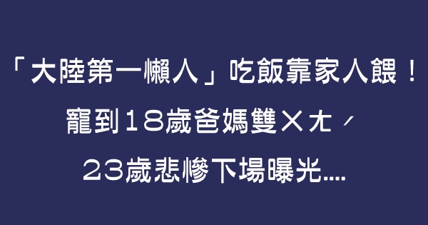 現代家庭小孩越生越少,讓父母親對子女的疼愛加倍,因此寵出不少「巨嬰」。大陸男子楊鎖出生在河南一個貧困家庭,之所以單名一個「鎖」字,是因為父母希望一輩子將兒子鎖在身邊。