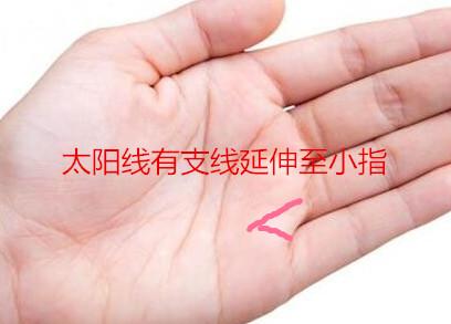 太陽線主人緣,有支線延伸至小指說明人緣好,多貴人,做事易成功,因此也容易成為有錢人。