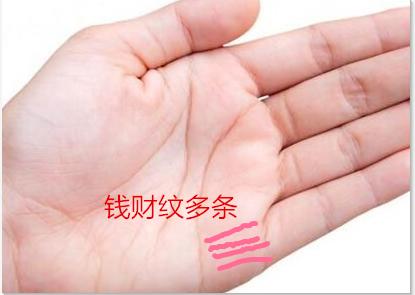 錢財紋主財富,若是有多條整齊排列的錢財紋,必定經商得財,會成為大有錢人。