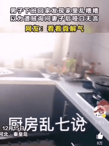 不僅廚房亂的不堪入目,就連卧室也是一片狼藉,根本沒有下腳的地方。這名男子心想,屋裡面不會是招賊了吧,於是就找到妻子想問問是什麼情況。