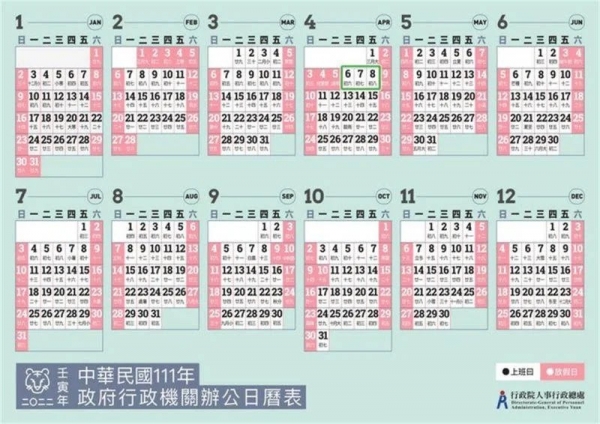 ▲中華民國111年政府行政機關辦公日曆表。(圖/行政院人事行政總處官網)