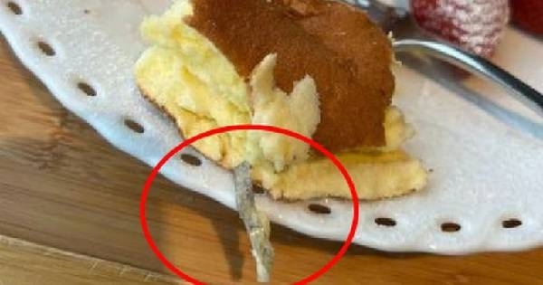 一名孕婦向爆料,本月18日(周六)到台中三井Outlet的ROSE HOUSE Café喝下午茶,點了一份「粉紅草莓奶霜」口味的特厚三層舒芙蕾鬆餅,吃到一半發現裡面竟有一條「黏了好多毛」的膠帶,把她嚇了一跳。