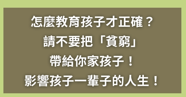 有貧窮觀的父母,本身就是對商品經濟不敏感的人,