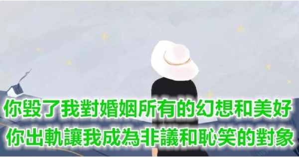 我原本以為你可以為我遮風擋雨,卻發現結婚後所有的風雨,都是你帶給我的。