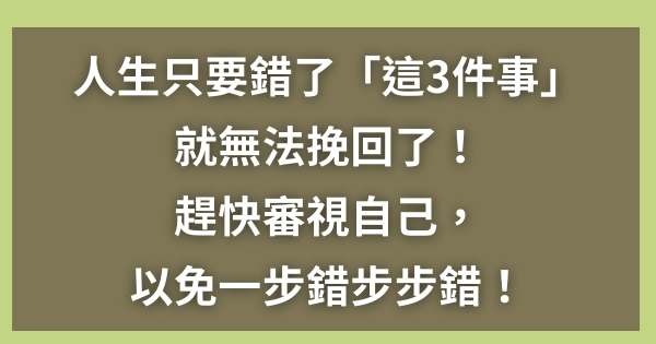 從此以後,避開這人生三大錯,走好每一步,人生才能一帆風順!