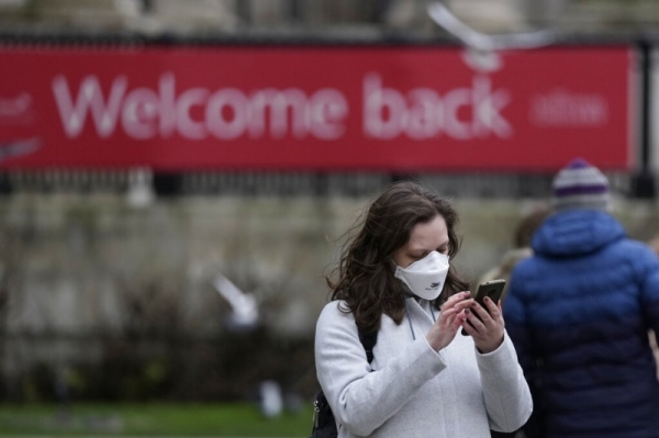 英國倫敦,打手機的女子。(美聯社)