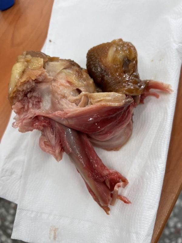 烤雞腿未熟透造成34名學生身體不適。圖/中華國中提供
