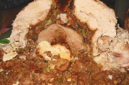 烤駱駝跟烤全羊的方式差不多,烤了以後外皮焦焦脆脆,外酥裡嫩,用刀分食,即使人再多也能管飽,尤其是駱駝身上包含駝峰的那一大塊肉,格外的肥美好吃。除了像烤全羊以外,還有點像中華美食裡的八寶鴨,因為裡面還裝有許多輔料,由於駱駝本身大隻,因此也可以裝下許多材料。