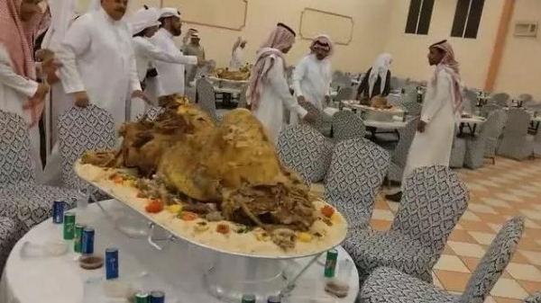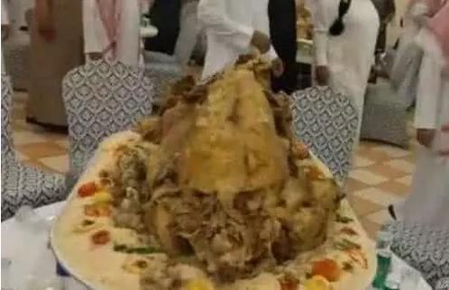 但這些土豪平時都吃什麼呢?那肯定是超豪華的盛宴吧,估計堪比滿漢全席,什麼鮑魚海參估計是跟土豆差不多的地位,最名貴的菜我們肯定聽都沒聽過。事實上,迪拜土豪舉辦宴會的餐桌上,卻只有一道菜,那就是烤駱駝。