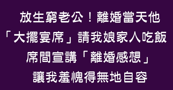 準備離婚那天,老公突然提出要求說:請我娘家人吃頓飯,就當是散夥飯吧。我和娘家人來到了預訂好的餐廳時,老公還沒有到。大概兩分鐘後,老公穿著名牌西裝,出現在了我眼前。
