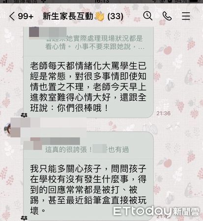 據悉,該班級約有26名學生,多數學生都曾遭受張女情緒不穩之苦,而家長創有LINE群組,有家長在群內表示,「常有同學被欺負,但張女卻跟孩子說不要一直去跟她說這種事」、「小事不能跟她說、大事她不處理,只能家長直球處理」、「老師每天都情緒化大罵學生,已經是常態」,均顯示張女情緒控管不佳,造成學生心理產生陰影。不少家長認為張女已不適任教師一職。