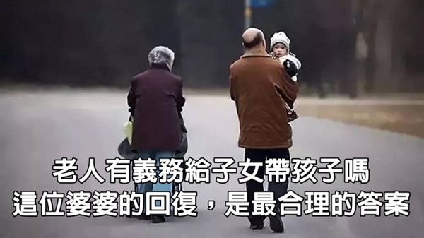 其實老人也確實該有自己的生活,尤其是已經抱上孫子之後,更不必凡事都以下輩人為先,除了法律規定的贍養義務之外,沒有什麼是必須的。