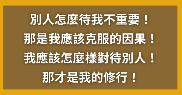 無師:沒錯,別人如何對你,已經是因緣聚合的結果了,無法改變,但作為修行之人,我們怎樣對待他人卻是可以選擇的,也是未來之事的因,不可小視啊