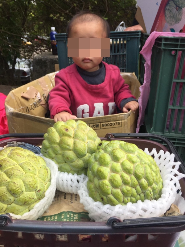 「桃園媽媽」李柏瑟日前在臉書發文,她上虎頭山「看到其中有一攤賣釋迦的媽媽,旁邊有一個箱子,裡面有一位可愛的小baby,這位辛苦的媽媽一邊做生意一邊還要照顧幼小的孩子。」