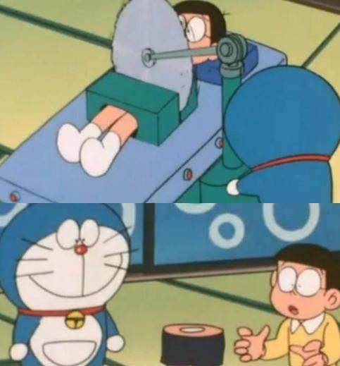 切割機這個道具看起來就嚇人,大雄起初還不敢嘗試,後來他睡著以後,被哆啦A夢一刀給切了...關於這個道具的用途就是:為媽媽跑腿。
