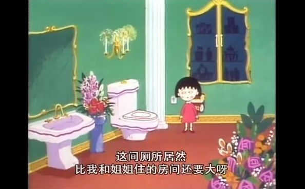 再補個圖,小丸子有一集離家出走了,於是在花輪家吃飯,看電視,泡澡……可以瞅一眼花輪家是如何做這事兒的。