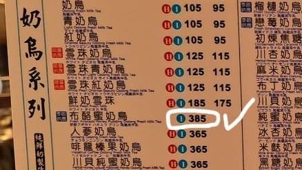 大遠百竹北店有家飲料店一杯飲料要價385元,