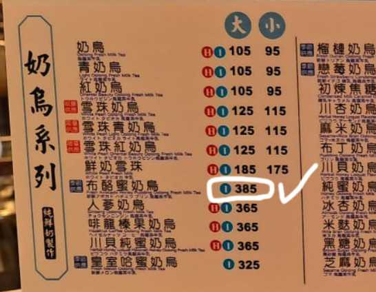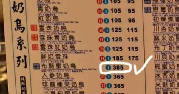 手搖飲竟然賣這麼貴?!日前一名網友在臉書社團「竹北遠百最新情報站」發文說,她去遠百竹北店6樓的某茶飲店消費,竟發現一杯「布酪蜜奶烏」要價385元。這讓她不禁驚呼:「是我3天的午餐費哎!」這件事也在網路上引發討論。