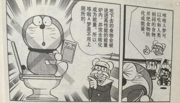 哆啦A夢也是要吃東西,不吃東西的話也是會餓的慌。不過他吃東西不像人類要消化在排除糞便,哆啦A夢可以通過體內的原子爐將食物完全的轉化成能量,這樣也就不用上廁所了。
