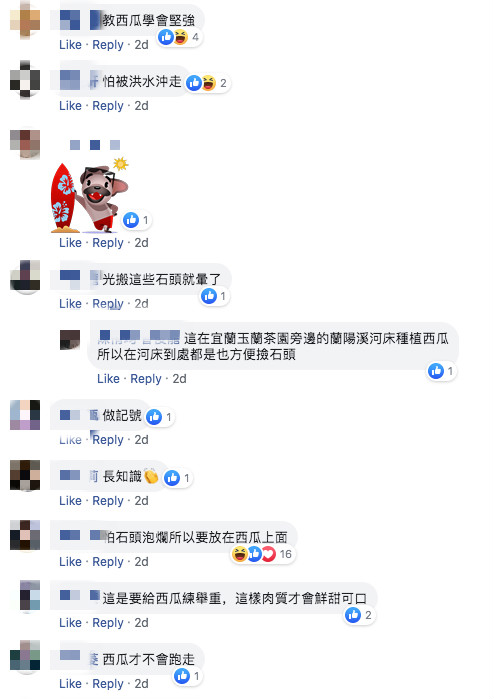 但也有部分網友對答案半信半疑,表示「我覺得阿伯在唬爛你」、「我種西瓜從來不放石頭」、「我問過種西瓜的園主,他說是為了白天分類、分等級,等晚上採收,不過晚上看不清楚,所以放石頭比較好認。」