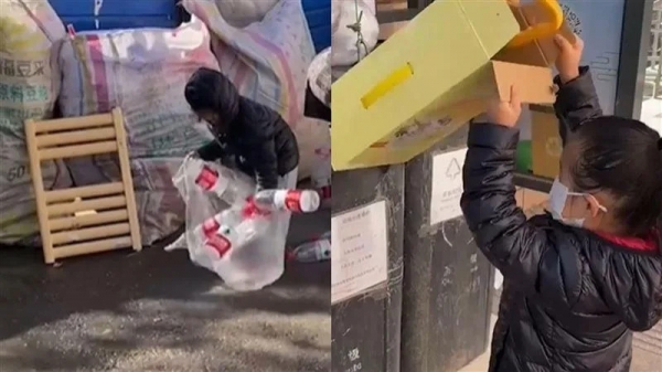 5歲女童得知哥哥罹患白血病時,跑去撿瓶子與紙箱替父母減輕負擔,籌醫療費。(圖/翻攝自猛瑪新聞)
