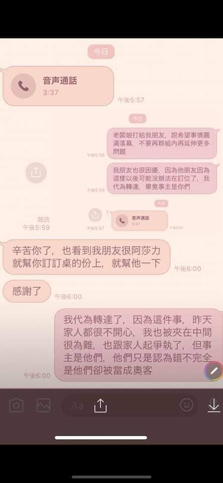 之後美食慢慢上桌,原PO家人想要先打包部分餐點給沒有到場的親友,因此隨意拿起一旁桌上的外帶盒,沒想到老闆女兒看到馬上衝出來,粗魯的把外帶盒收起來裝箱,並大聲喝斥「不要亂拿東西好嗎」,原PO先生見狀非常不滿,要求對方講話客氣一點,沒想到老闆女兒馬上嗆聲表示:「我怎麼了?你看到我臉臭了嗎?」雙方馬上爆發爭執,直到同桌長輩上前緩頰才落幕。