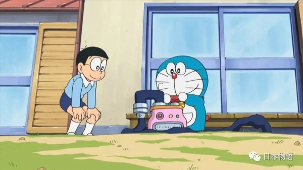 於是哆啦A夢與大雄就將幫浦插進自家庭院裡……