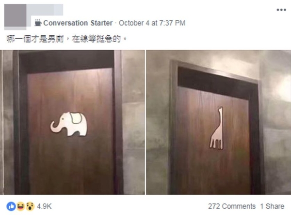 大家一開始有猜對哪個是男廁、哪個是女廁嗎?沒想到在外上廁所還要先考試,下次記得才不會發生糗事喔!