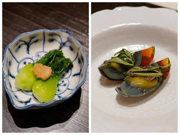 ▼從顧客曬出的照片可以看到,這間餐廳提供的餐點多種多樣,有燕窩蛋撻、日式白身魚的刺身、加拿大象拔蚌等等,但分量都非常少。最誇張的是,有顧客拍到一個盤子裡只放著2瓣皮蛋。這間餐廳屬於套餐制,人均2000元人民幣,還要收取10%服務費。顧客須提前支付1000元人民幣定金,取消要提前24小時,否則不予退還定金,下午6點30分準時吃飯,不能遲到。
