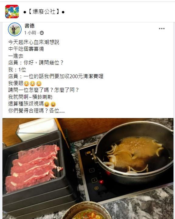 而不少單身的網友也不解,一個人用餐為何要加收清潔費?