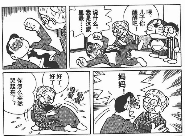 大雄的媽媽也是完全管不住已經喝醉了的大雄爸爸的,因此他們想了一個辦法,那就是把奶奶給接過來來教訓一下爸爸。