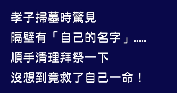 這時候,他發現旁邊有座墳墓同樣長滿雜草,更讓他驚訝的是,墓碑上竟然出現他的名字「肖樂」,上前仔細看清楚,原來母親的「鄰居」叫楊肖樂,肖樂心想到可能其親人沒空過來,又碰巧名字一樣,讓他直覺的順手清理,讓他的墳也變乾淨。