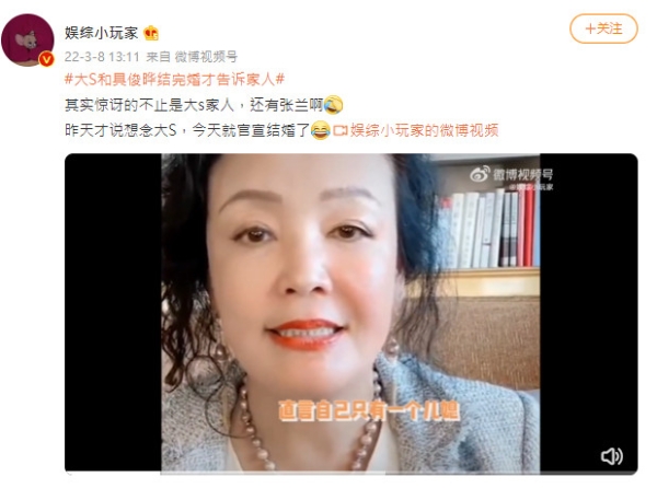 大S恢復單身後3個多月就再婚成為人妻,勇敢追愛的精神讓人直呼太浪漫,身邊的親友也感到震驚。與張蘭的婆媳關係已過去,外界開始好奇大S新婆婆的感想。