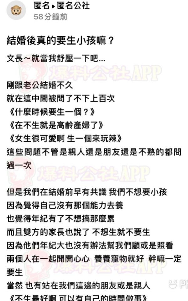 (我身邊包含我也是不婚不孕啊,雙方家庭都能體諒理解,其他人說什麼都是屁。)