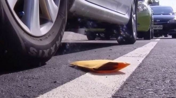 網友行經新竹中平路一段5百多號時,在大馬路上看到皮包,裡面有一個鼓鼓的薪資袋,上面大剌剌寫著「5月份薪資,總金額6萬元」,緊緊密封著,結果送到派出所打開後,竟赫然發現裡面塞滿了廣告紙,而非現金。