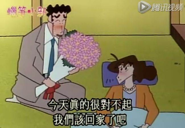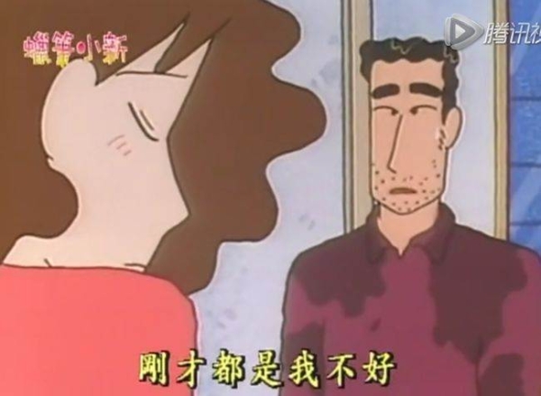但是當廣志聽小新說美冴哭了的時候,瞬間收起了那副大男子做派趕緊認慫、道歉。