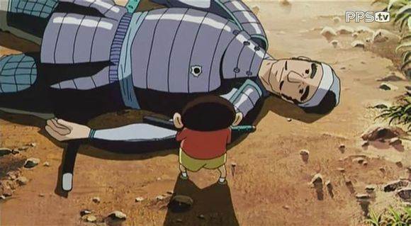 1、在劇場版《占過大合戰》裡面,小新偶然來到過去的世界認識了又兵衛,隨後爸爸媽媽,小葵和小白也來了,雖然最後勝利了,但是回去的路上又兵衛中槍死了,他把自己的一把刀給了小新,小新哭得很傷心,為此也回到了原來的世界。