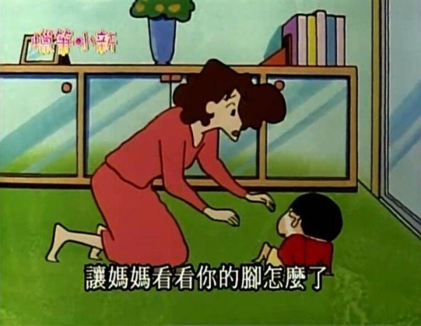 7、小新又拿著媽媽的內褲惡作劇,媽媽怒吼了他,結果害他扭到了腳,但是媽媽不知道。