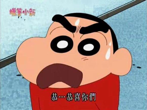 但是他仍然忍痛祝福他們新婚快樂(好堅強的小新)。