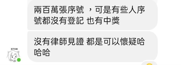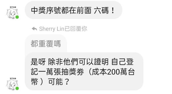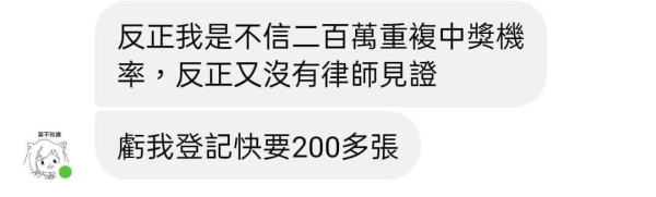 「從去年十月到現在,每個禮拜開獎,還是需要上網一張一張登錄發票才能抽獎!人家中了兩三期…就上網武斷的斷定人家有鬼…被關切好像也不意外..」