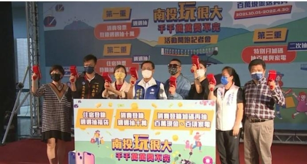 配合五倍券,南投縣府舉辦「南投玩很大」活動,民眾只要在縣內消費、住宿,就有機會抽現金大獎。