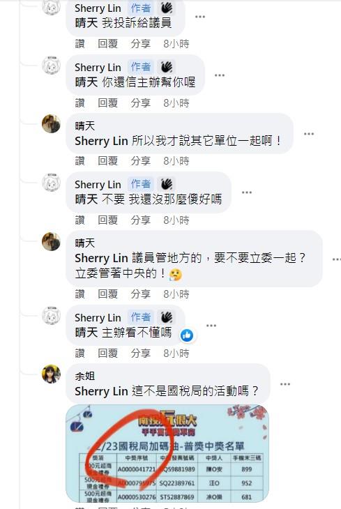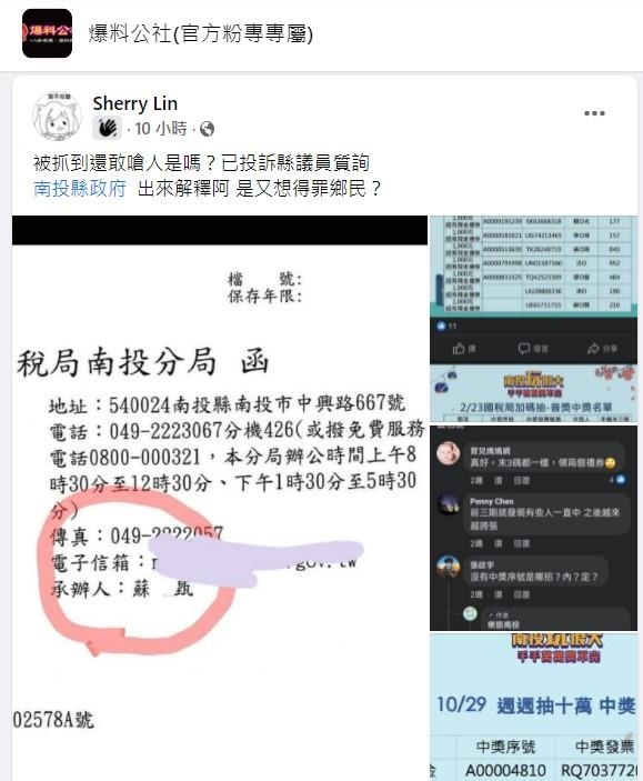 只是有其他網友有不同看法「冤有頭債有主,國稅局是中央政府單位,只是這個是在南投的分支,別搞錯了。」