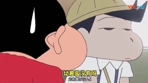 小新問風間現在是暑假吧?風間冷淡的回復了一句:是哦。小新繼續問我們是要去幼稚園嗎?而前面的正南開始輕輕晃動腦袋,風間依然呆呆的回答:幼稚園?沒有。