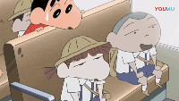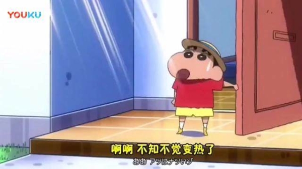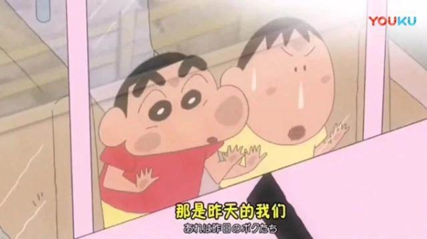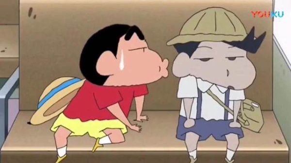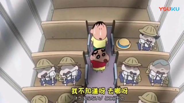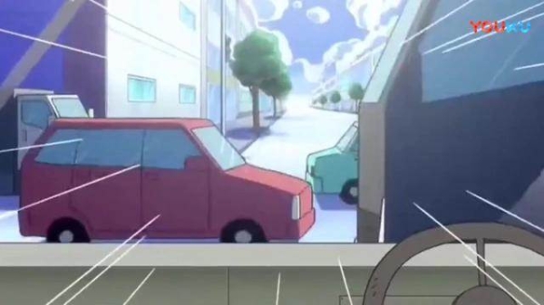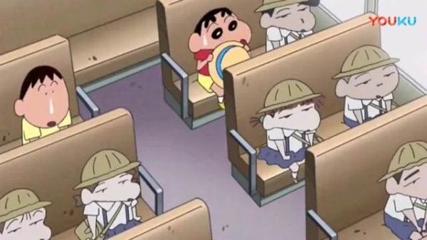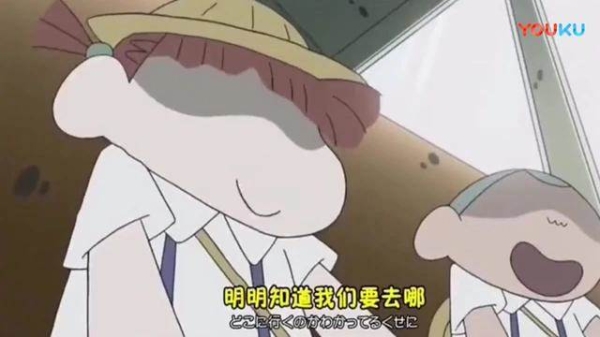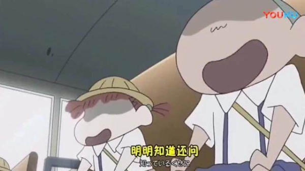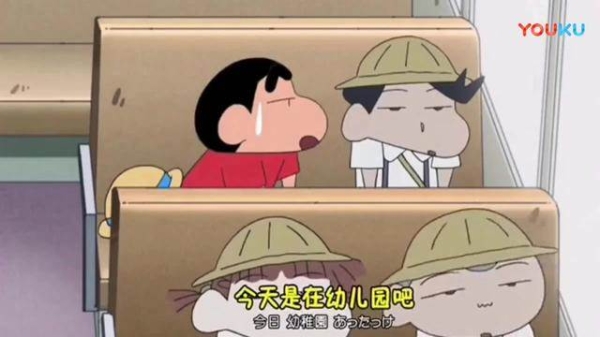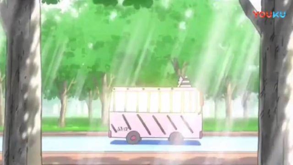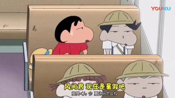 這天小新頂著炎熱的夏天出門了,這時幼稚園的娃娃車開過來停在門口,小新看到車上有正南和妮妮他們在,而一臉呆滯風間正在向自己招手。