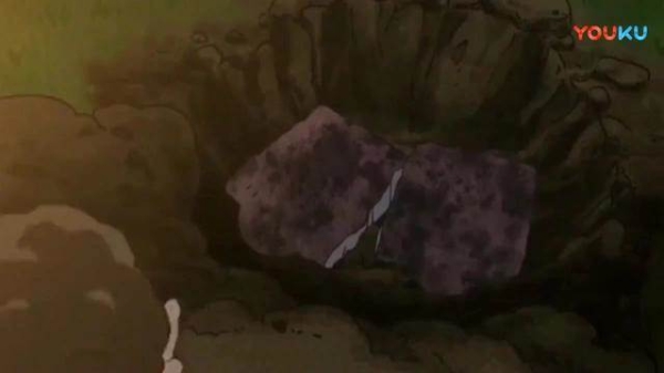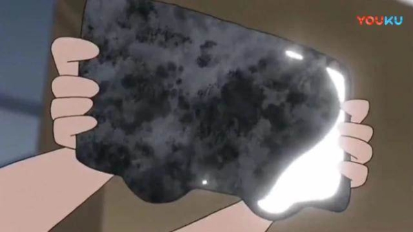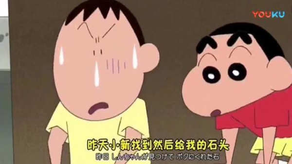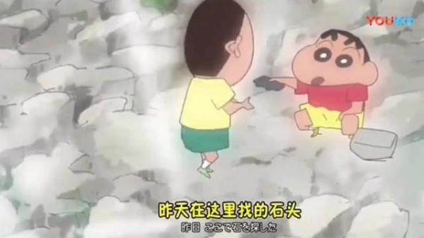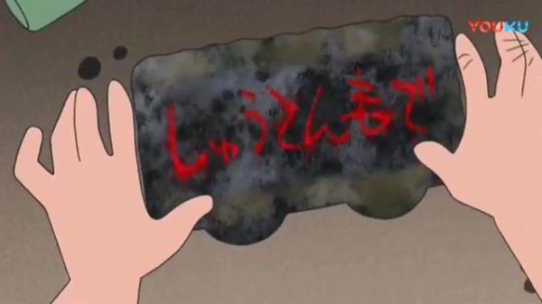 阿呆想到自己的神器可以一試,于是讓小新拿好石頭使出一招鼻涕高速清晰,用無窮無盡的鼻涕強勢的洗乾淨了石頭上的字。