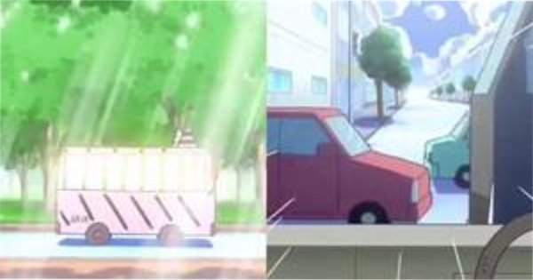 當娃娃車車速變得平穩時,小新和阿呆發現娃娃車開到了一片綠蔭之中,而路過的地方很熟悉。