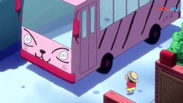 娃娃車似乎感受到了兩個小孩的行為,前置燈頭變成紅色加速行駛中。阿呆想要把方塊石頭丟出去,結果發現窗戶打不開。