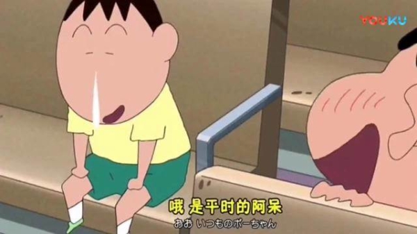 小新被這奇怪的場面嚇到了,突然想起阿呆。小新轉過頭看阿呆一如既往的玩自己的鼻涕,看來阿呆是平時的阿呆。